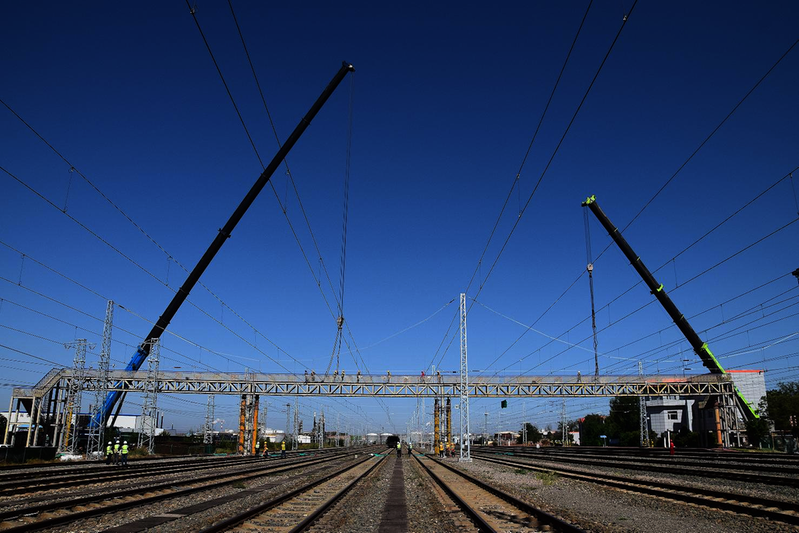 古窑子车站跨线天桥正进行拆除准备工作 9月23日,随着最后一段钢立柱平稳落地,古窑子车站信号楼恢复列车通行调度指令准时下达,标志着西安电化公司宁东铁路电气化改造项目部负责施工的跨线天桥拆除工程圆满收官。这场历时600分钟的铁路营业线“超危大”一级施工,实现了“零事故、零延误”的双零目标,为宁东铁路电气化改造工程打通了关键节点。
