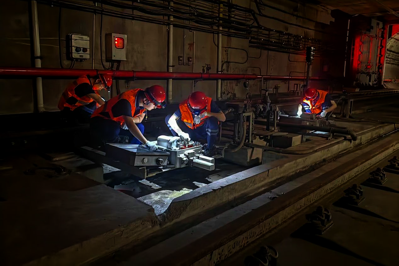 深夜十一点四十分,作业令正式下达,检修工班迅速整装进入轨行区。检修队员们手持强光照明设备,沿着轨道缓缓推进,光束在信号机、轨道电路等设备间来回移动,不放过任何一处细节。夜间是设备“体检”的黄金时间,能更精准检测长时间高温运行后的设备状态。