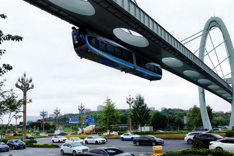 武汉光谷“光子号”空轨列车驶在九峰山至高新大道区间 马博 摄 年 度
